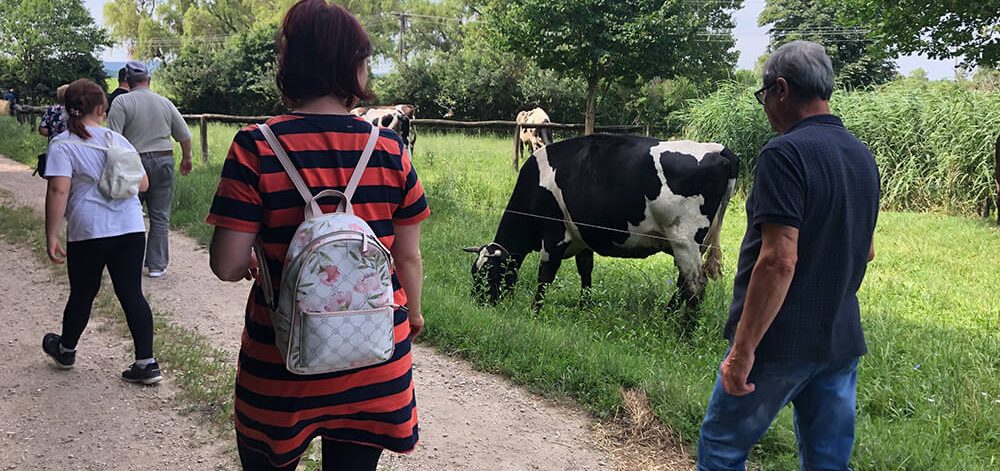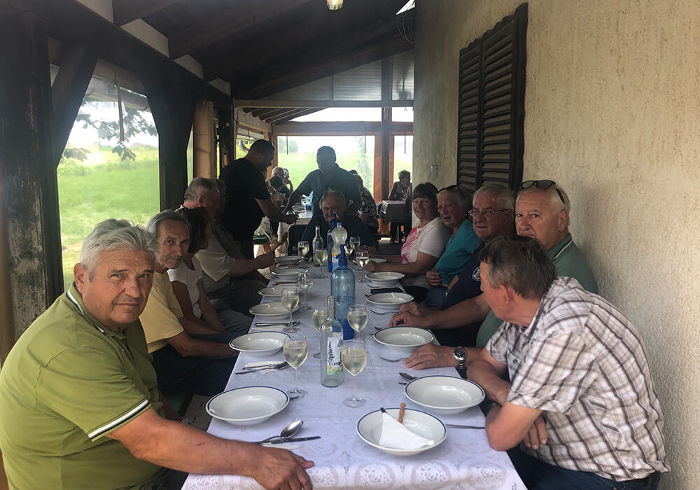 Obiskali smo tudi družino, ki redi krave molznice za predelavo mleka v različne vrste sirov. Imeli smo bogato degustacijo sirov z različnimi okusi, kot so sivka, pehtran, rdeča čebula in rdeča paprika,.. Vsako degustacijo in kosilo je spremljala tudi degustacija lokalnega vina, saj smo bili v vinorodnem okolišu.