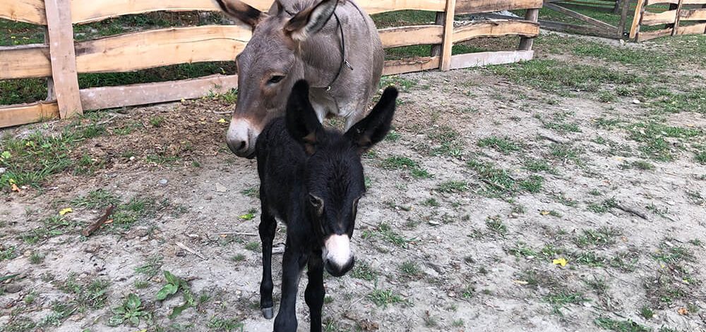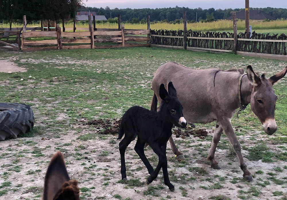 On August 5, 2024, in the early morning hours, our donkey Tončka had a little donkey! The little donkey, born without complications, quickly started walking, is diligently drinking its mother’s milk and happily hopping along next to his mother. The newborn donkey is completely black, only his snout is brighter. At the Prekmurje Model Farm, they are very happy that the little donkey was born without complications, and that the mother Tončka and her little one are feeling well.