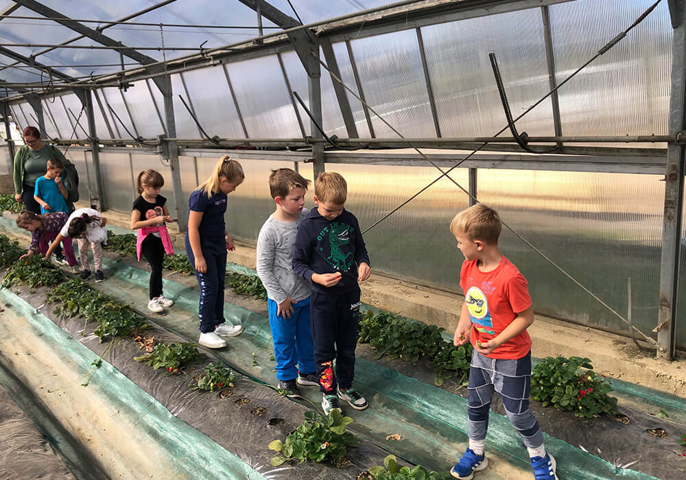 A klasszikus kert mellett a tanulók más kertészeti formákat is megismertek a gazdaságunkban. Elbűvölte őket az akvapóniás kert, ahol saláta nő, és az üvegház, ahol eperrel és uborkával kedveskedtek maguknak.