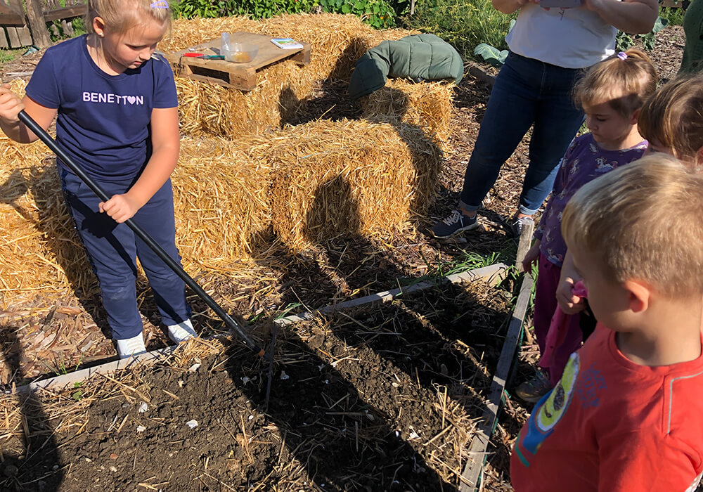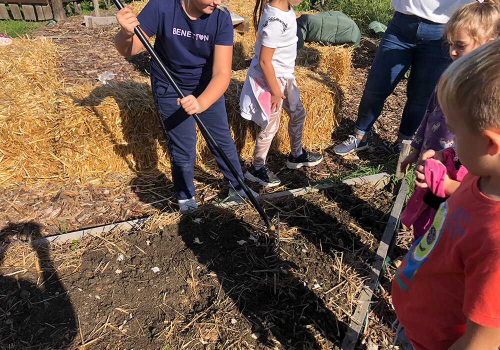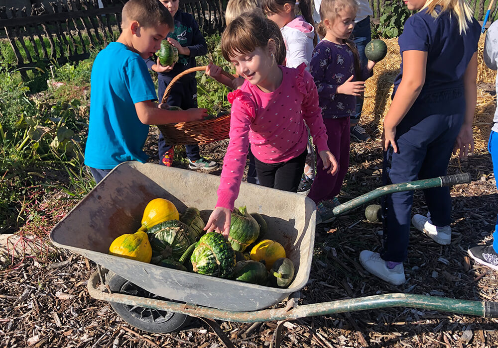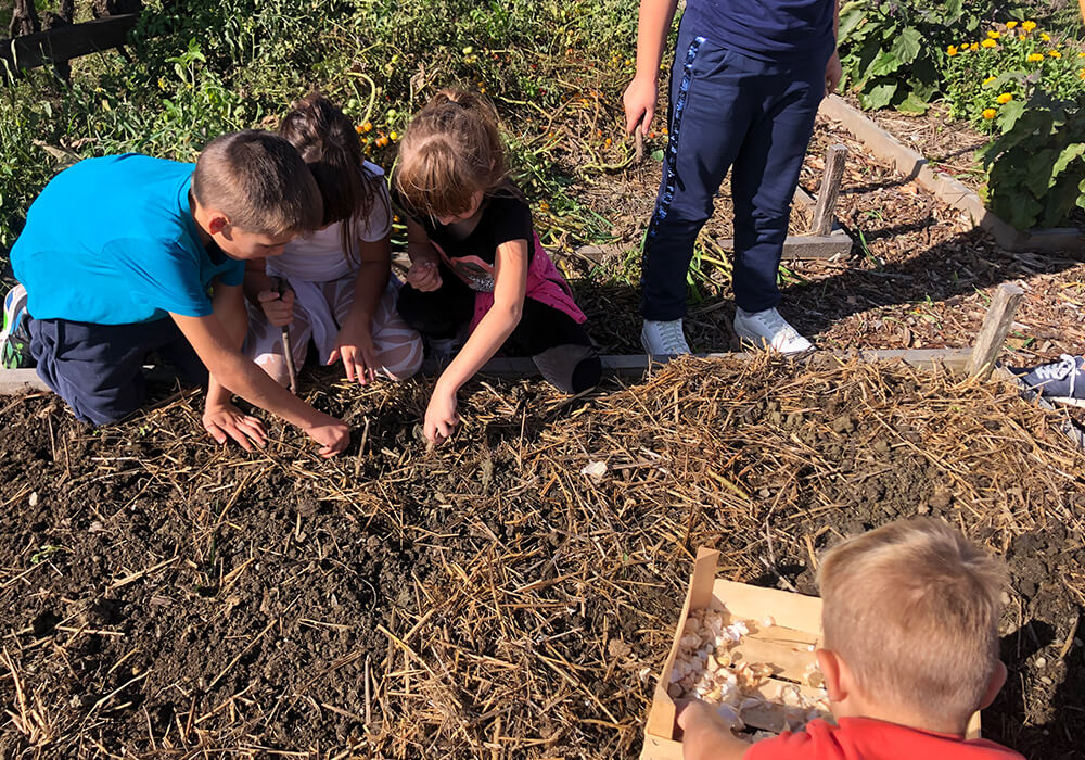 1. október 8-án, kedden a mintagazdaságunkban fogadtuk a dobronaki KÁI tanulóit, akik a Gyermekhét keretében a kert témáját kutatták. Együtt felfedeztük, mi az a konyhakert, hogy néznek ki a veteményesek, milyen kerti eszközök vannak, és még sok minden mást. A tanulók lehetőséget kaptak, hogy leszedjék az utolsó paradicsomokat és dísztököket, majd nekiláttunk, hogy előkészítsük a veteményest és elültessük a fokhagymát. A tanulók megtanulták az egész folyamatot: a talaj lazítását villával, miért fontos a fokhagyma és milyen tulajdonságai vannak, valamint hogyan kell helyesen elültetni a fokhagymát. Végül a veteményest mulccsal fedtük le, hogy felkészüljön a télre.