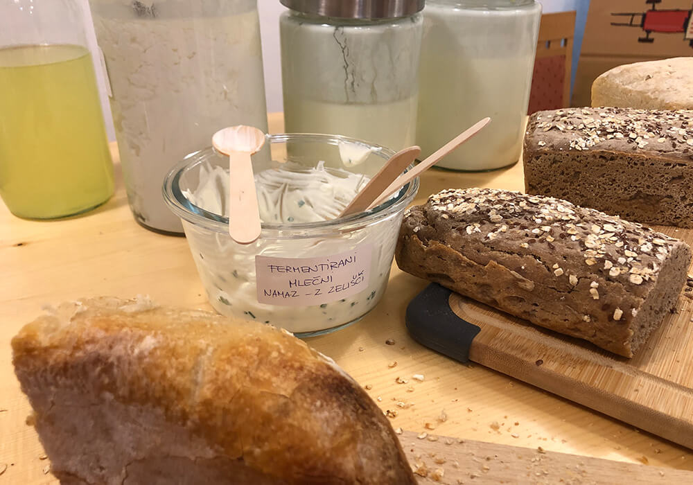 Na začetku delavnice so udeleženke izvedele, kaj sploh je fermentacija in kako poteka ta naravni proces, ki izboljšuje hranilno vrednost živil in podaljšuje njihovo obstojnost. Predstavljeni so bili tudi primeri živil, ki jih lahko fermentiramo. Posebna pozornost je bila namenjena drožem, ki so ena izmed najbolj prepoznavnih oblik fermentacije in jih uporabljamo pri pripravi kruha. Prav tako smo spoznali različne fermentirane mlečne izdelke, kot so domač jogurt in sirotka.