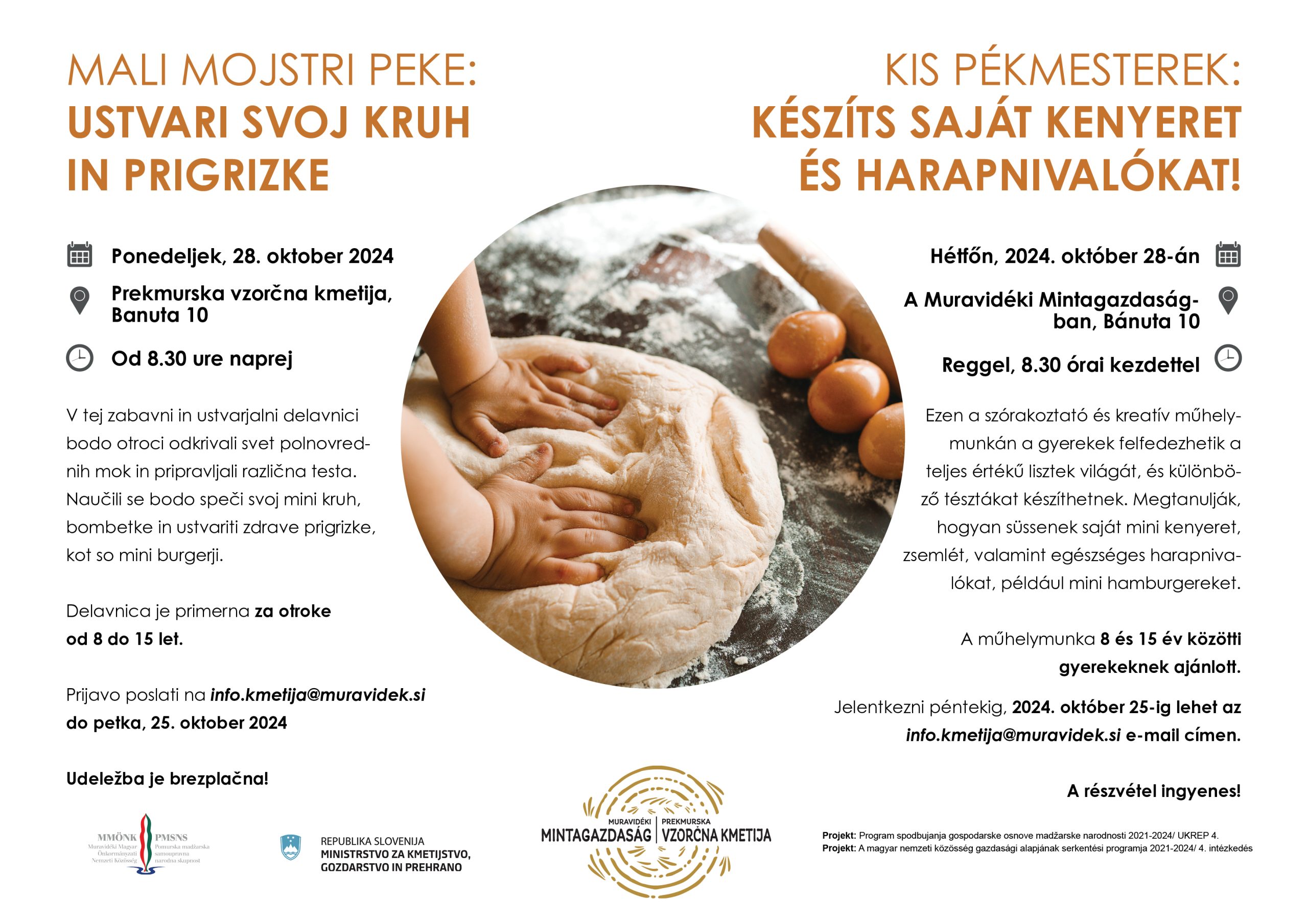 V ponedeljek, 28. oktobra 2024 smo na Prekmurski Vzorčni Kmetiji organizirali »pekovsko« delavnico za otroke. Zbralo se je lepo število otrok, ki so dopoldne preživeli v radovednem in ustvarjalnem vzdušju.