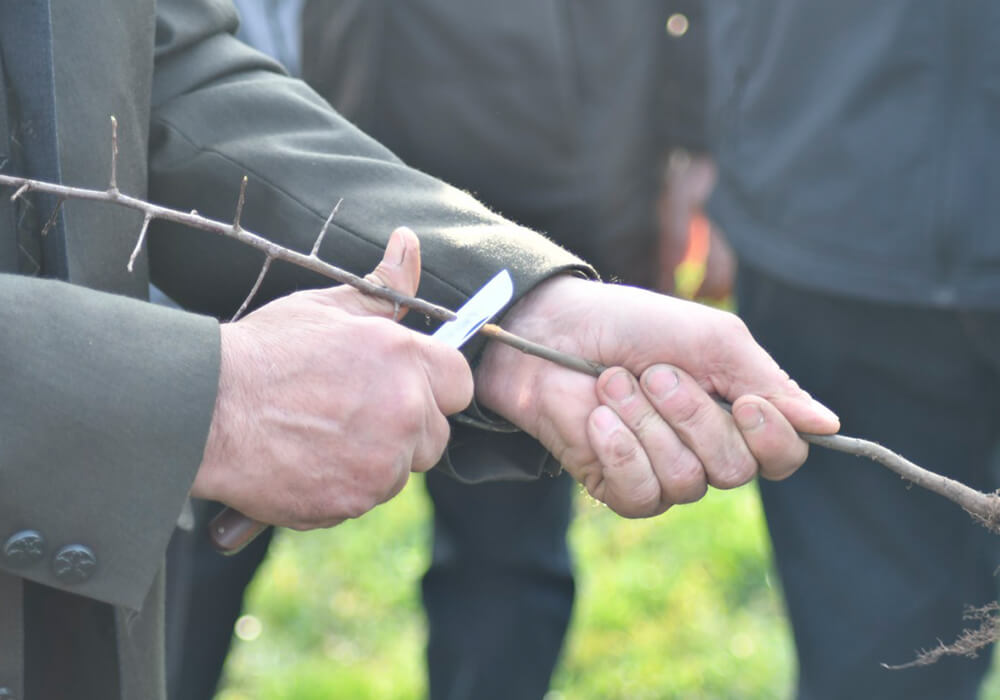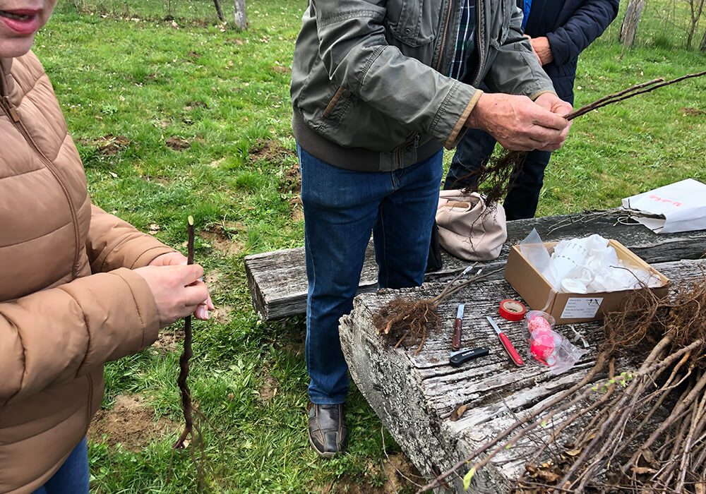 A bemutató során egy régi hetési almafajta, a Bordási alma oltványait használtuk, hozzájárulva ezzel a hagyományos gyümölcsfajták megőrzéséhez és továbbörökítéséhez.