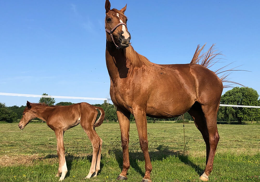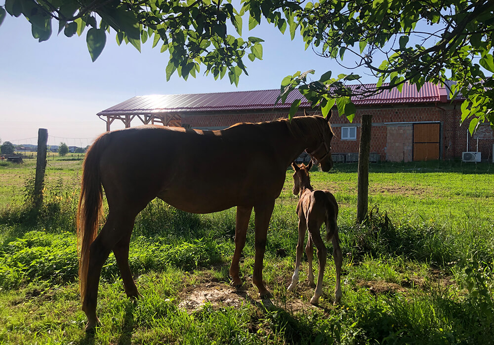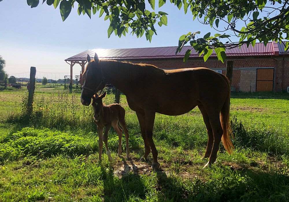 Ponosna mama, Korax Forrás Bóbita, in njena živahna žrebička se odlično počutita.
